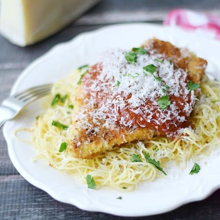 I am sharing my go-to recipe for Chicken Parmesan instead. It is crispy and light, and definitely not deep fried! It is so simple to prepare, about 30 minutes total if you use a jarred or pre-made Classic Marinara Sauce.