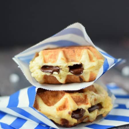 Yum, these look amazing, but I don’t know about handling the waffle as soon as it comes off the iron because the sugar is molten hot. I’ve made the mistake a few times of not using a fork and I burned my fingers. I think I’d rather make a chocolate ganache and dip one side of the waffle into it.