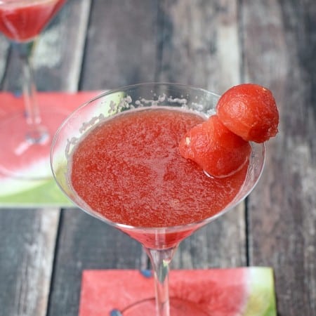 - Pour into 2 martini glasses and garnish with watermelon balls or wedges.