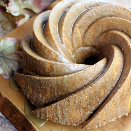 Homemade Pumpkin Pie Martini bundt cake flavored with pumpkin puree, rum, whiskey, maple, warm spices, and topped with a simple glaze is the perfect fall and Thanksgiving dessert. It tastes just like your favorite pumpkintini cocktail, baked into a moist and tender cake!