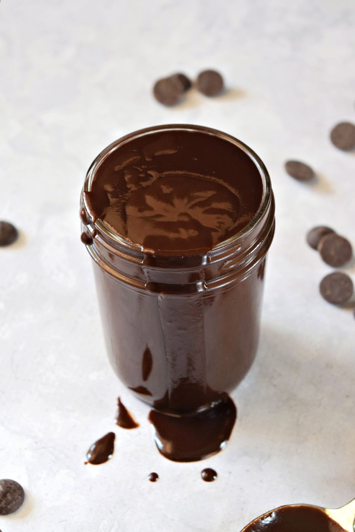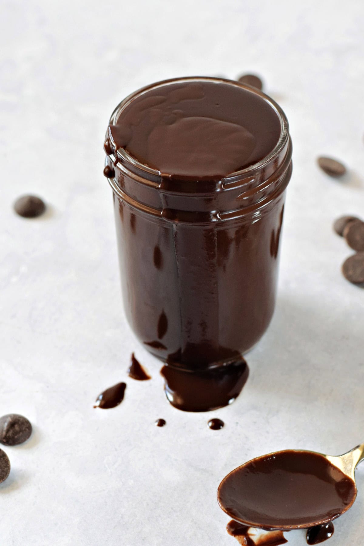 You should probably hide the jar in the back of the refrigerator to keep everyone from eating it with a spoon straight out of the jar – it is that good!! This Hot Fudge Sauce is thick and rich even without using half & half.