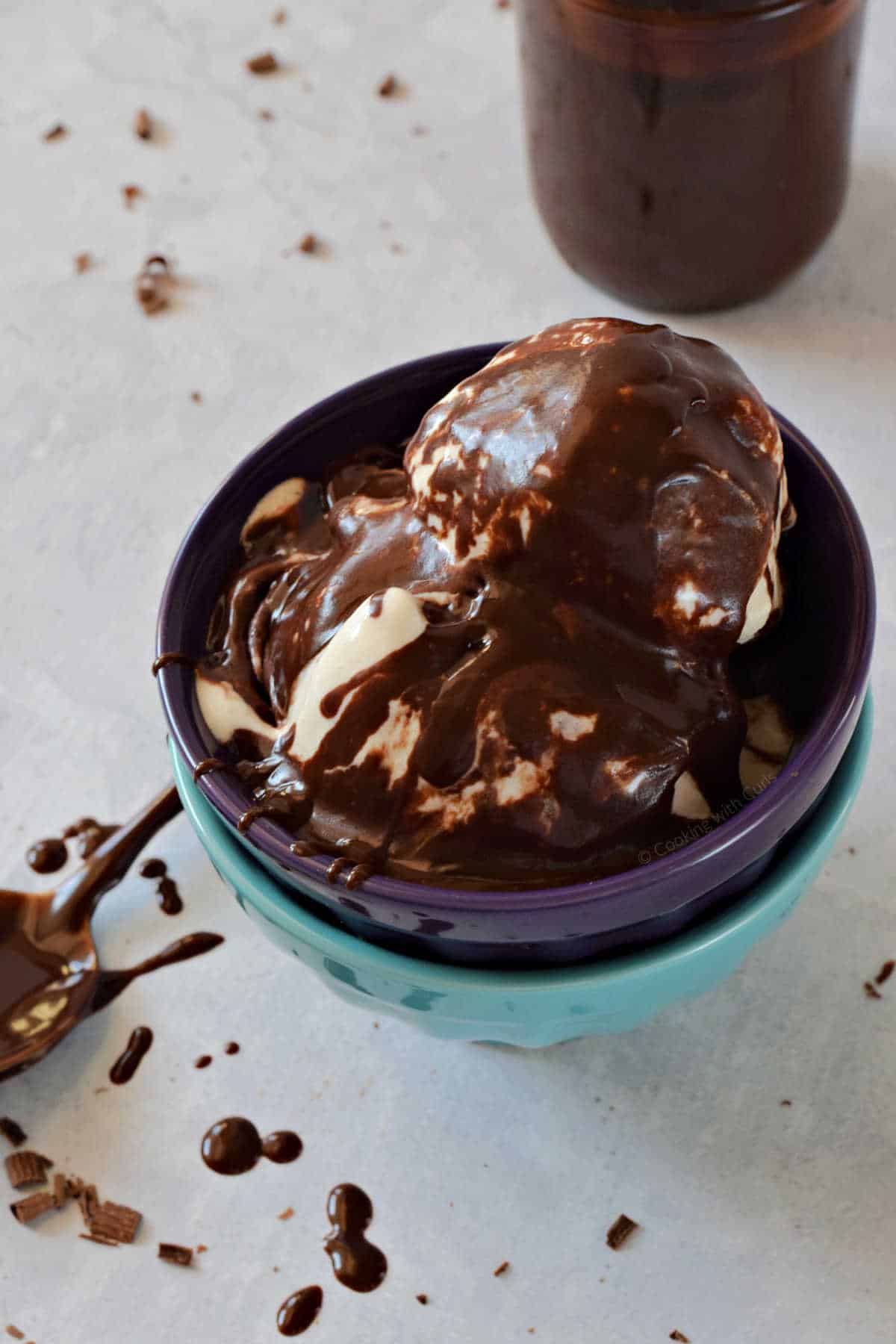 I always think about hot fudge sauce when I am playing with chocolate ganache, like on my Chocolate Hazelnut Pizza, this extra special Mocha Almond Fudge Truffle Pie, and my favorite BAILEYS Kiss Cupcakes. I finally decided that enough is enough, and started experimenting!