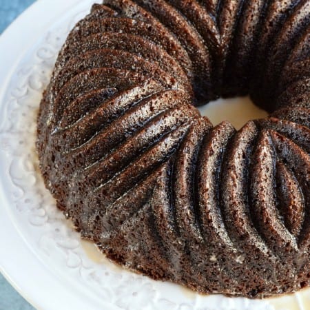 This is extra important if you have a detailed bundt pan like this Bavaria design that I used. Any 10 cup bundt or 9 by 13-inch pan will work.