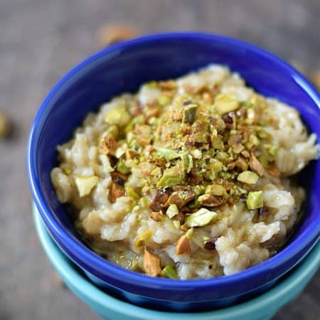 Holy Yum, Batman!! Not only is this Pistachio Baklava Oatmeal delicious, but it is also pretty healthy. Pistachios lower bad cholesterol and raise good cholesterol levels. They are also a good source of Vitamin B6, phosphorous, Vitamin E, and anti-oxidants.