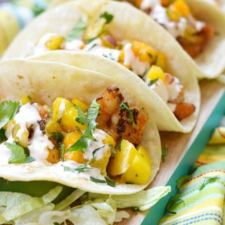 Taco night just got a whole lot better with these delicious grilled shrimp tacos! Served on warm corn tortillas, packed with juicy jumbo shrimp, papaya mango salsa, shredded red cabbage, and chipotle crema, these tacos are sure to please.