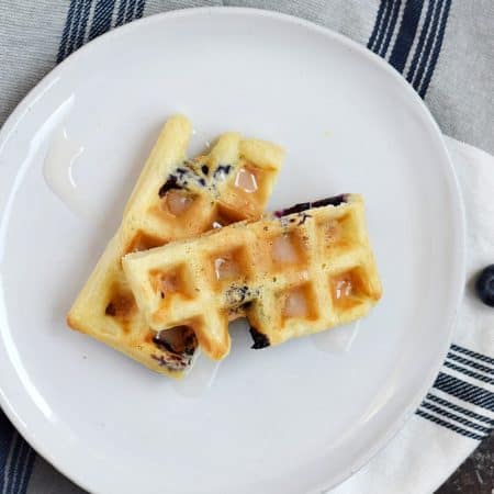 Blueberry Lemon Waffled Muffins are the perfect breakfast treat! They are soft and fluffy on the inside and crispy on the outside with a sweet lemon glaze. This is the perfect solution when it’s too hot to turn on the oven and you are craving muffins!