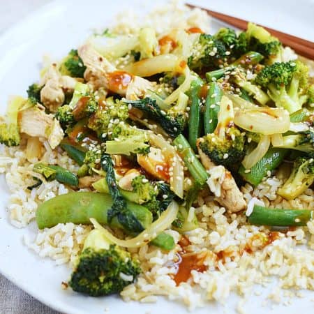 Who is ready for back to school? Early mornings, busy evenings…hungry families! Well this Chicken Teriyaki is the perfect meal for those crazy nights. Tender chicken breasts, lots of green veggies, tossed together with teriyaki sauce and served over a bed of brown rice…or white rice if you prefer…..