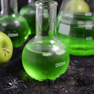 Green apple soda, caramel and apple pie flavored vodkas combine to create a deliciously festive Halloween cocktail! This Poisoned Apple Martini Cocktail is a bit tart, has a slight kick, and some fun bubbles.