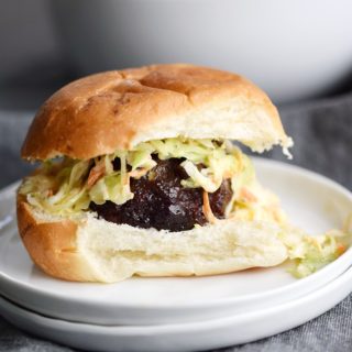 Slide them into a cocktail bun or dinner roll and top with Creamy Coleslaw and voila…Blackberry-Bourbon Burger Sliders = appetizer heaven!!