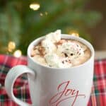 - Pour into mugs and top with your favorite whipped topping and garnish with chocolate shavings and crushed candy canes.