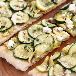 Grilled Summer Squash Pizza is the perfect light, healthy meal made with zucchini, yellow squash, red onion, garlic oil, two types of cheese and fresh herbs. You will be grilling this family favorite all summer long!