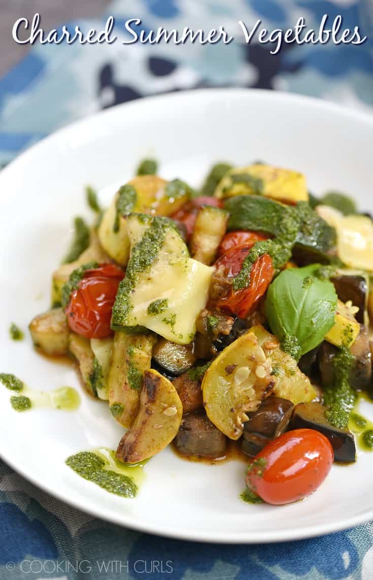 Charred Summer Vegetables are the perfect vegetarian meal or a delicious side dish that you will enjoy serving all summer long! It is also the perfect way to use up all of those vegetables that are bursting out of your gardens.