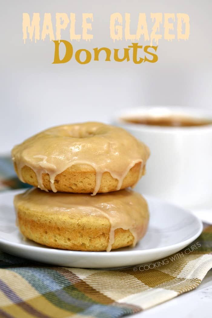 Baked to perfection and topped with a sweet glaze, these Maple Glazed Donuts make a delicious treat any time of day! We traditionally think of donuts as a breakfast item, but they work as an afternoon snack or even dessert as well. Donuts are pretty much the perfect food, they make you happy any time of day and always bring a smile to your face.