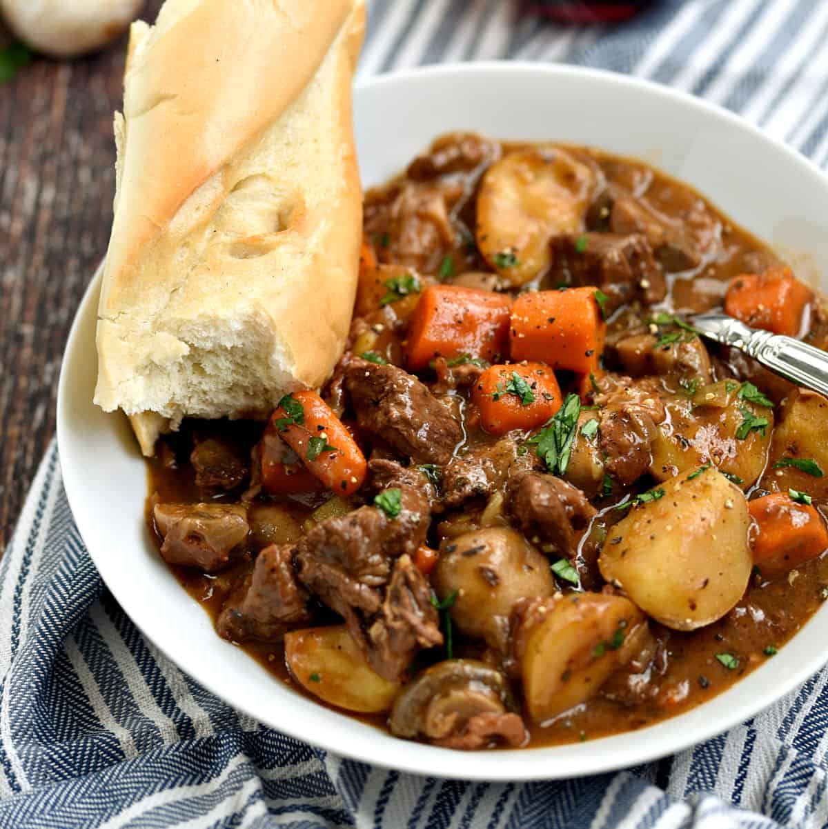 Oven: Follow the steps above for the stovetop preparation, then place in a preheated 350 degree oven for 2.5 to 3.5 hours, until beef and vegetables are fork tender.