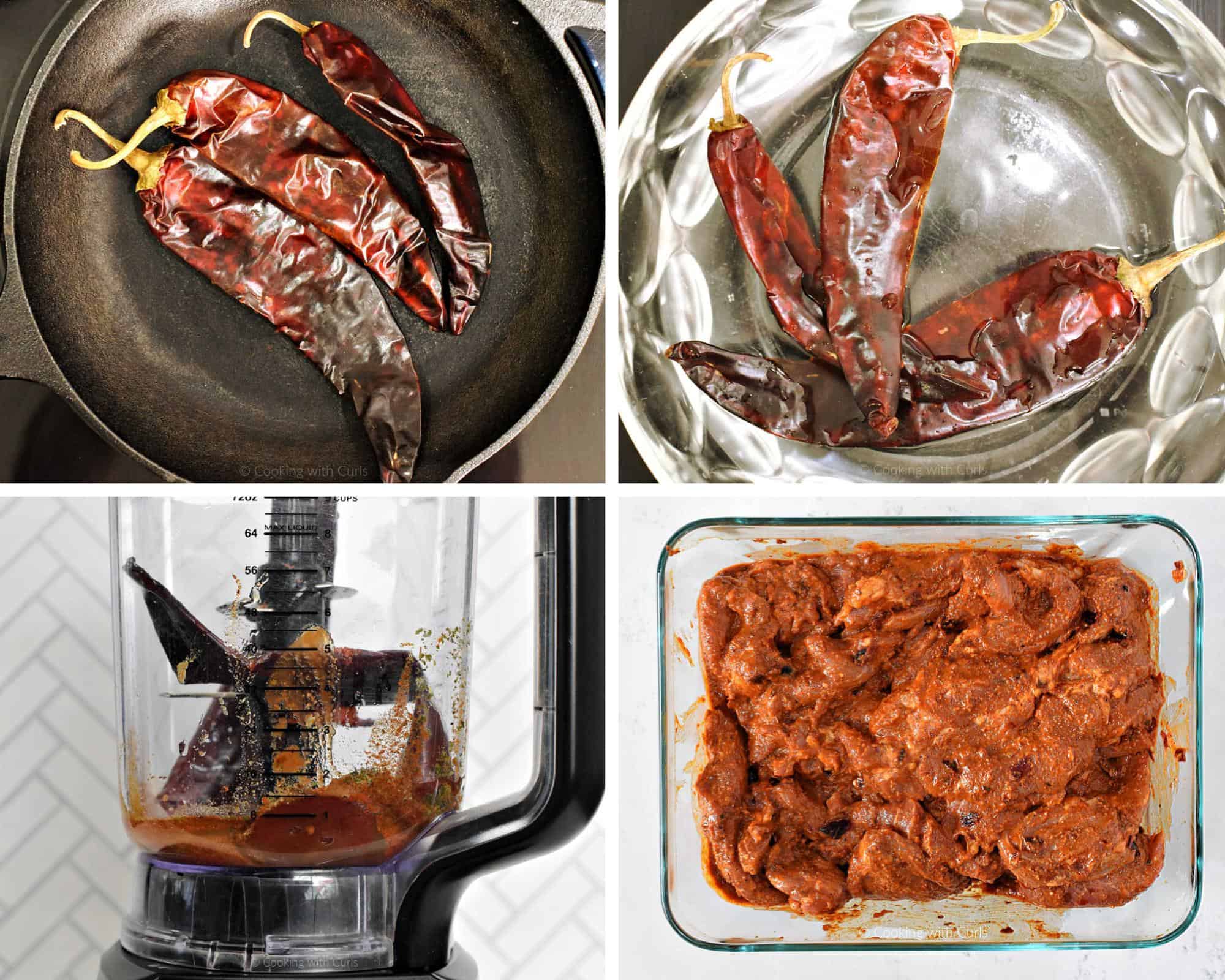 Toast the dried guajillo peppers in a dry pan over medium heat for about 1 minute until fragrant (don’t burn them!).