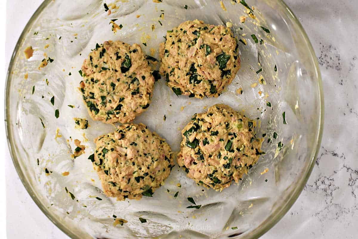 - Handle the patties gently when shaping and adding them in the pan. Press just enough to form each patty, overworking the mix can make tuna patties tough instead of tender.