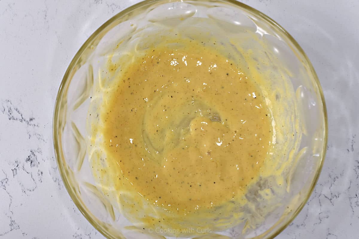 Whisk together the egg, mayonnaise, Dijon (or your favorite condiment) in a mixing bowl.
