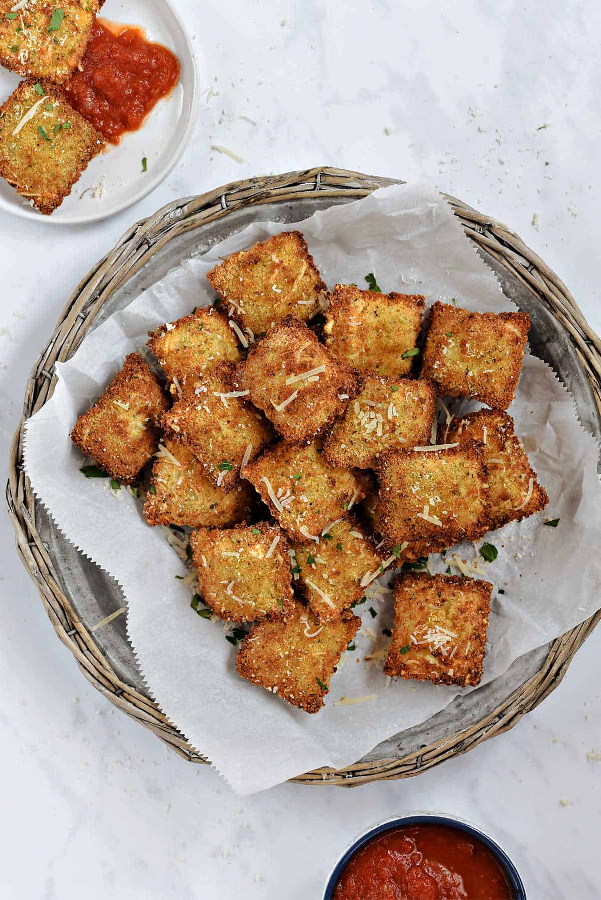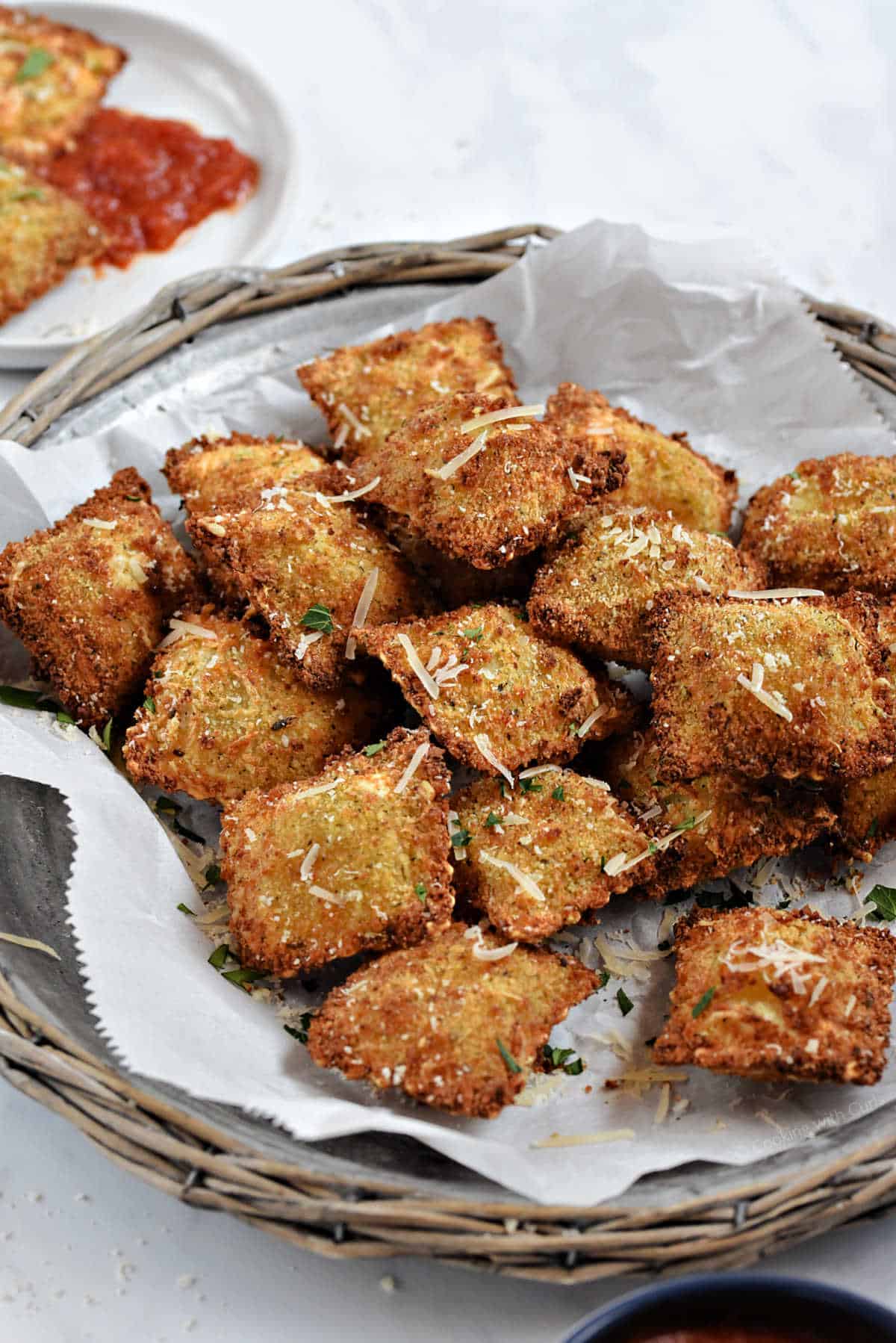 - Make sure you spritz both sides of the ravioli before air frying, and again when flipping for that signature crispiness. Use a bottle that mists gently, a heavy pour makes the coating soggy.