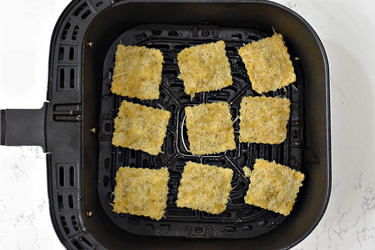 Place breaded ravioli in a single layer in the air fryer basket that has sprayed with oil. Don’t crowd them – space is key. Work in batches so hot air can circulate.