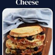 - Slice brie about as thick as your finger – about 8 slices. Lay two slices directly on the unbuttered side of each bread slice. Top with fresh blackberries on one side.