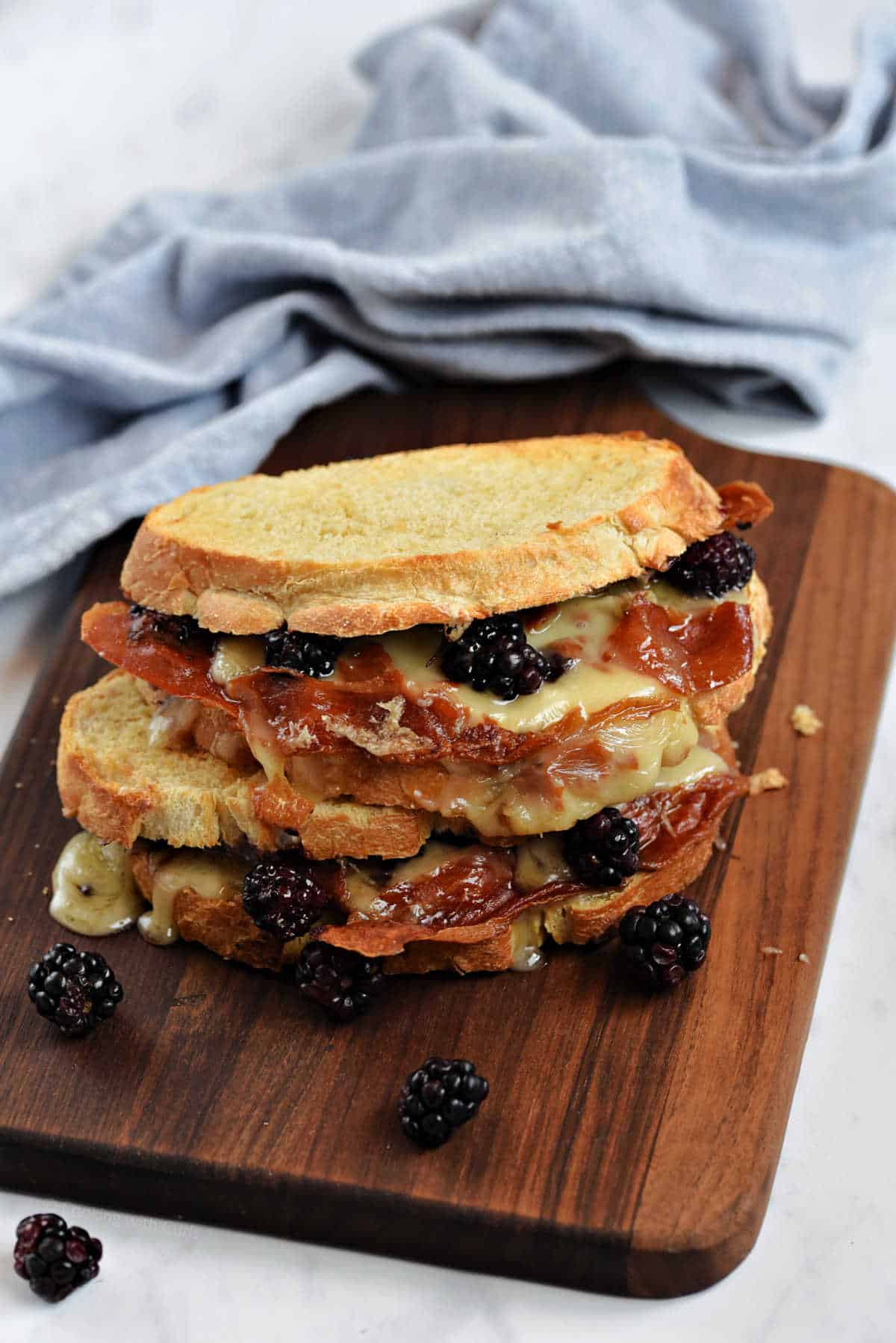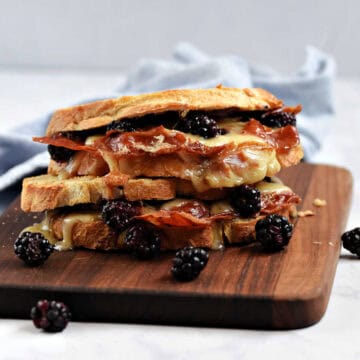 Soft, melting brie, sweet berries, and hint of savory prosciutto wrapped in crisp sourdough offer more than just a meal – Blackberry Brie Grilled Cheese takes that classic childhood favorite and gives it new life.